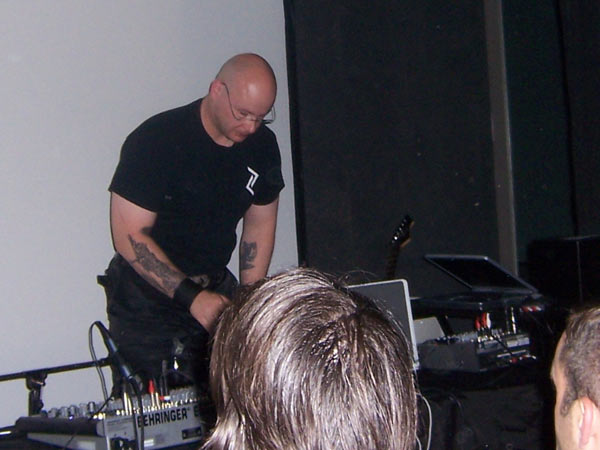 hinter seinem Laptop und produzierte sehr statische Soundstrukturen, die